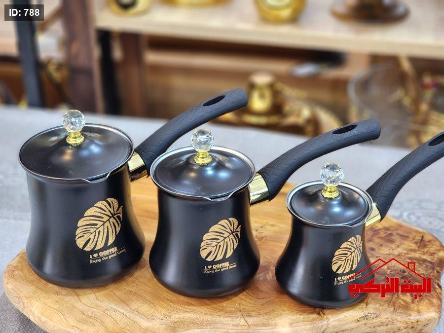 طقم 3 غلايات ستيل اسود رسمة ريشة
