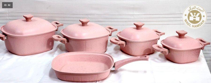 طقم طناجر جرانيت مع غطاء جرانيت 4 أحجام + قلاية