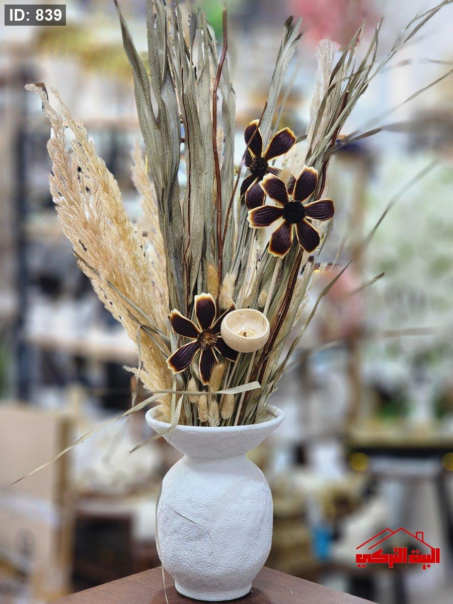 مزهرية جبصين ابيض مع ورد