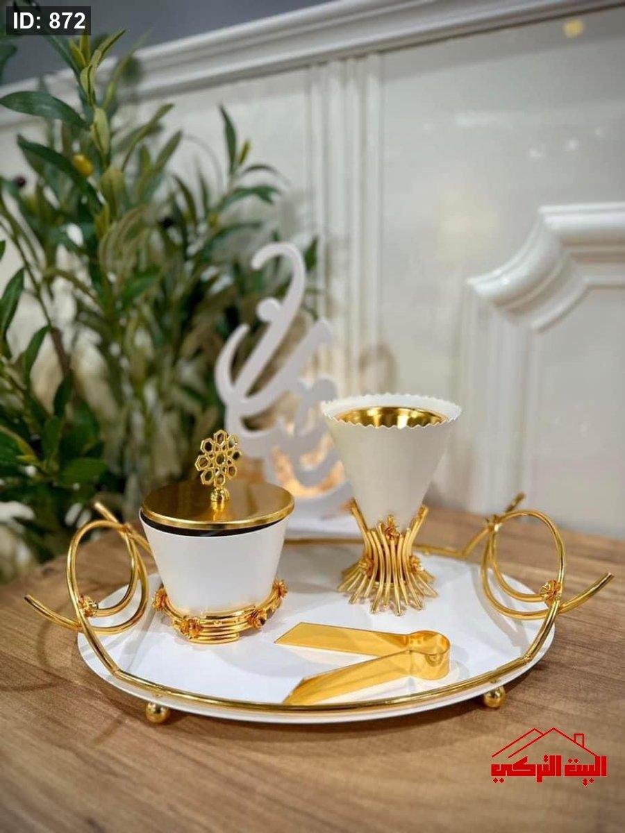طقم مبخرة مع صينية معدن مطلي