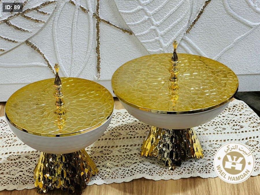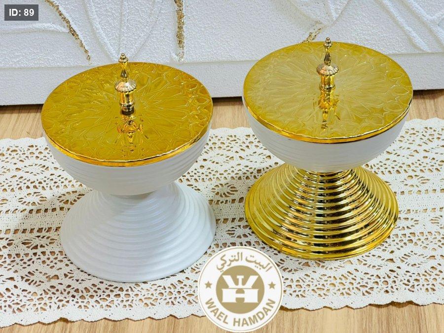 مضايف بورسلان مع غطاء ذهبي بأحجام مختلفة