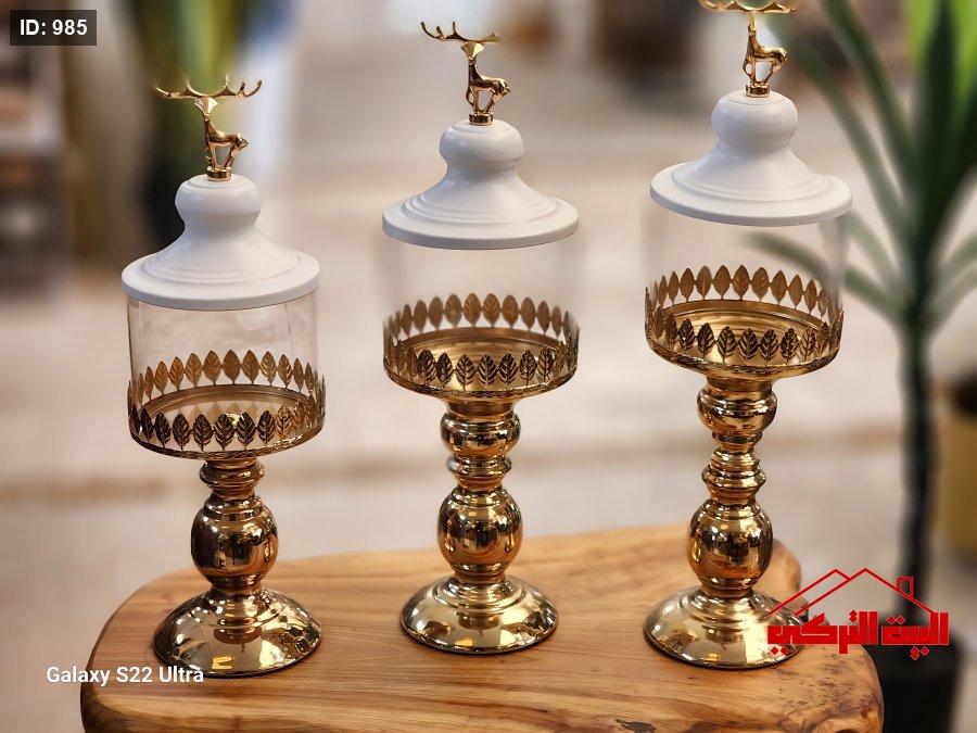 طقم سكريات بيوتر زجاج مع غطاء يد غزال